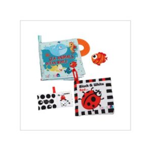 • SOFT CRINKLE BOOKS SET- Be a child once again! New Design, Bright colors for your baby’s attention, A variety of Colors, Cute Animals, Characters, textures & Crinkle paper. MULTIPLE THEMES, ILLUSTRATED BY ARTISTS & DEVELOPED BY EXPERTS IN THE US - Black and White Red, Sea Animals, Ocean World, Fish, Shark, Owl! 2 different kinds of book; crinkle paper book,Teething toy, perfect baby books and teether toy for boys & girls.