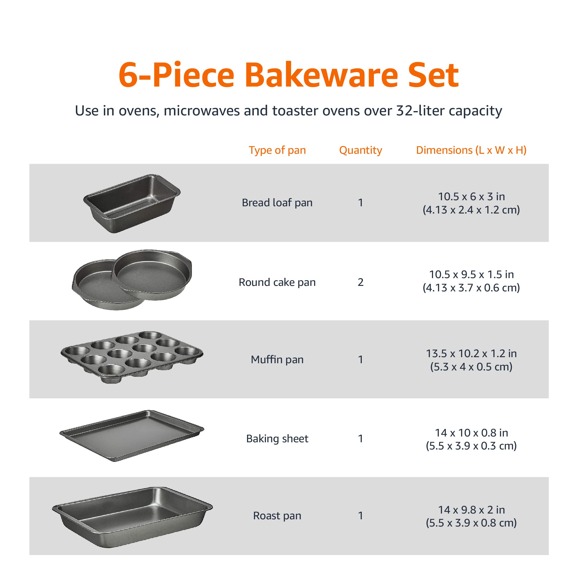 Amazon Basics 6-Piece Nonstick Oven Bakeware Baking Set