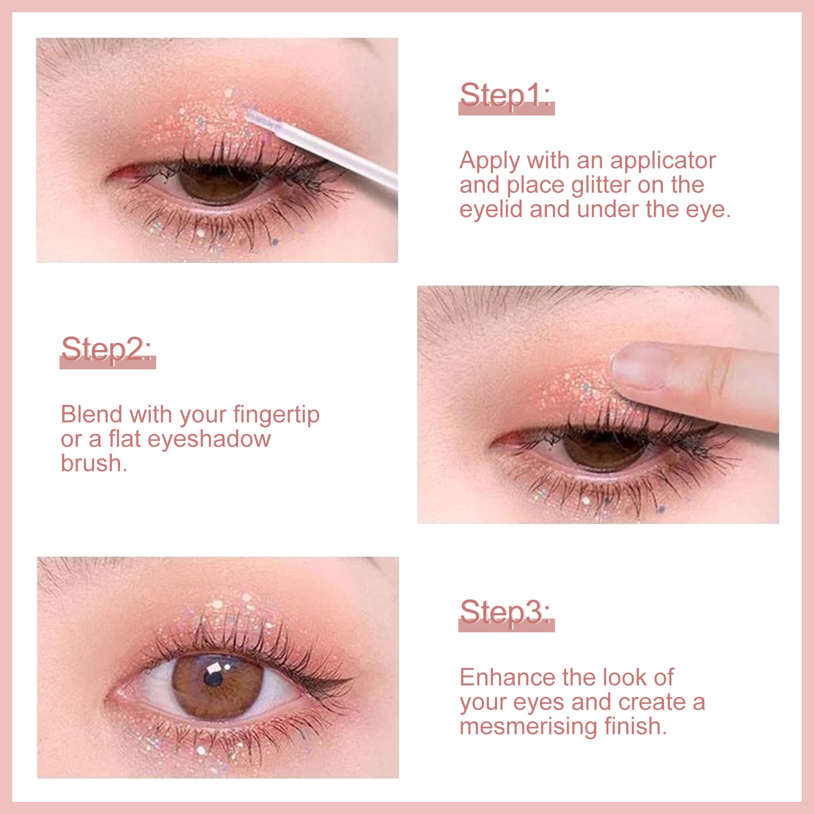 - 【Multi-purpose】This liquid glitter eyeshadow can also accent the head of the eye or be used on the lashes to create a lovely glitter Korean Style Makeup. Or apply as a body highlighter on your lips, collarbone or other areas to create a shimmery look and amplify your glamour.