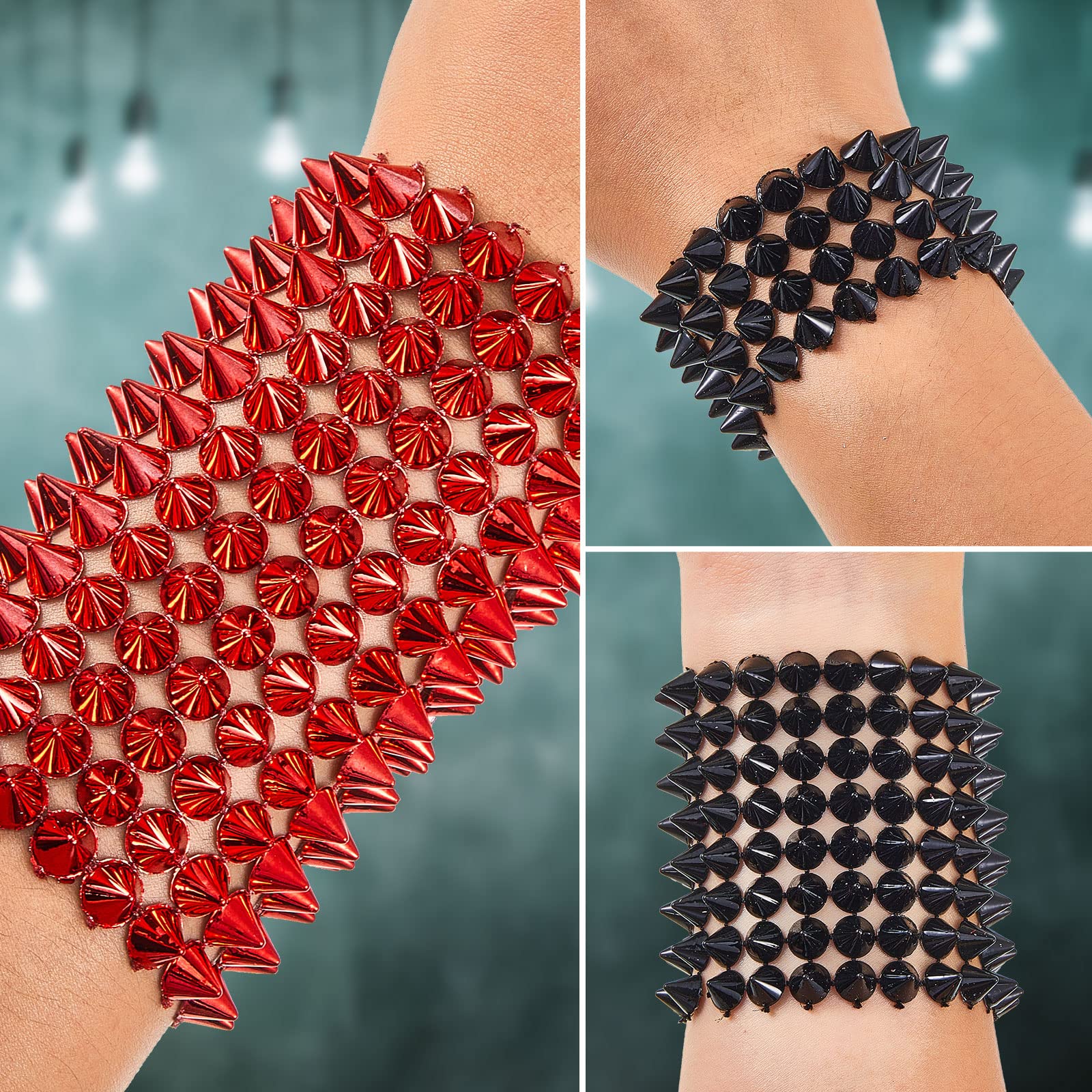 Features: Punk jacket spikes are designed delicately to serve you, bringing a fluent use experience, suitable for DIY beginners and skilled people. You can send them to your loved people as gifts, giving them a surprise on birthdays or important festivals, to show your love. Studded spikes are simple and reliable to use, enough to replace and share, light in weight and easy to carry, providing a lot of conveniences. Specifications: Material: plastic Color: black, red Size: the width is about 11 cm/ 4.33 inches, the length is about 1 yard per roll Package includes: 2 Rolls of spikes for crafts Notes: Manual measurement, please allow slight errors on size. The color may exist a slight difference due to different screen displays. Please keep away from small kids in case of choking and winding risk.