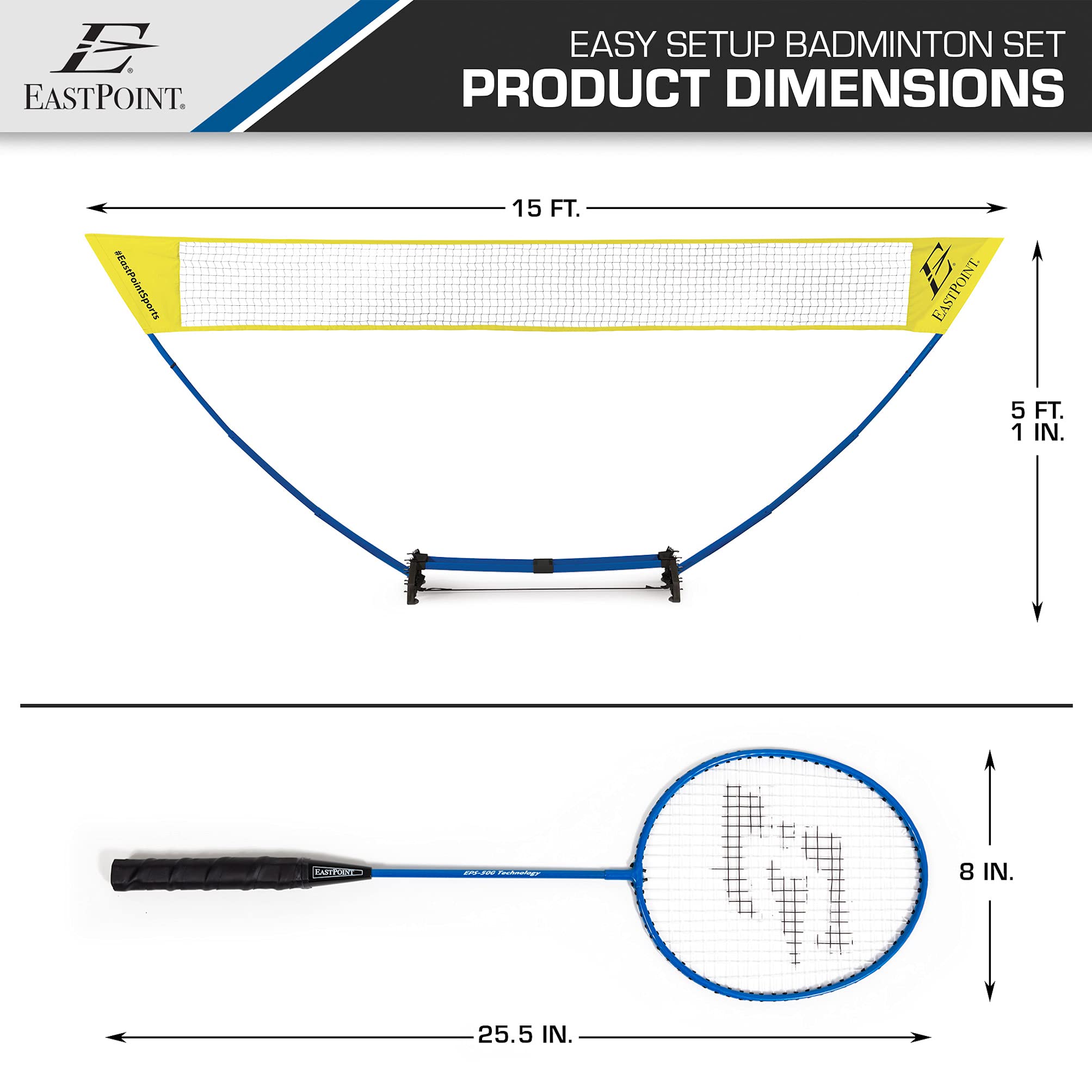 - [Instant Badminton Court]: Telescoping poles attach to the travel case to create a stand alone badminton net; Badminton net with stand expands to 5 feet tall by 9.5 feet wide (1.5 x 2.9m)